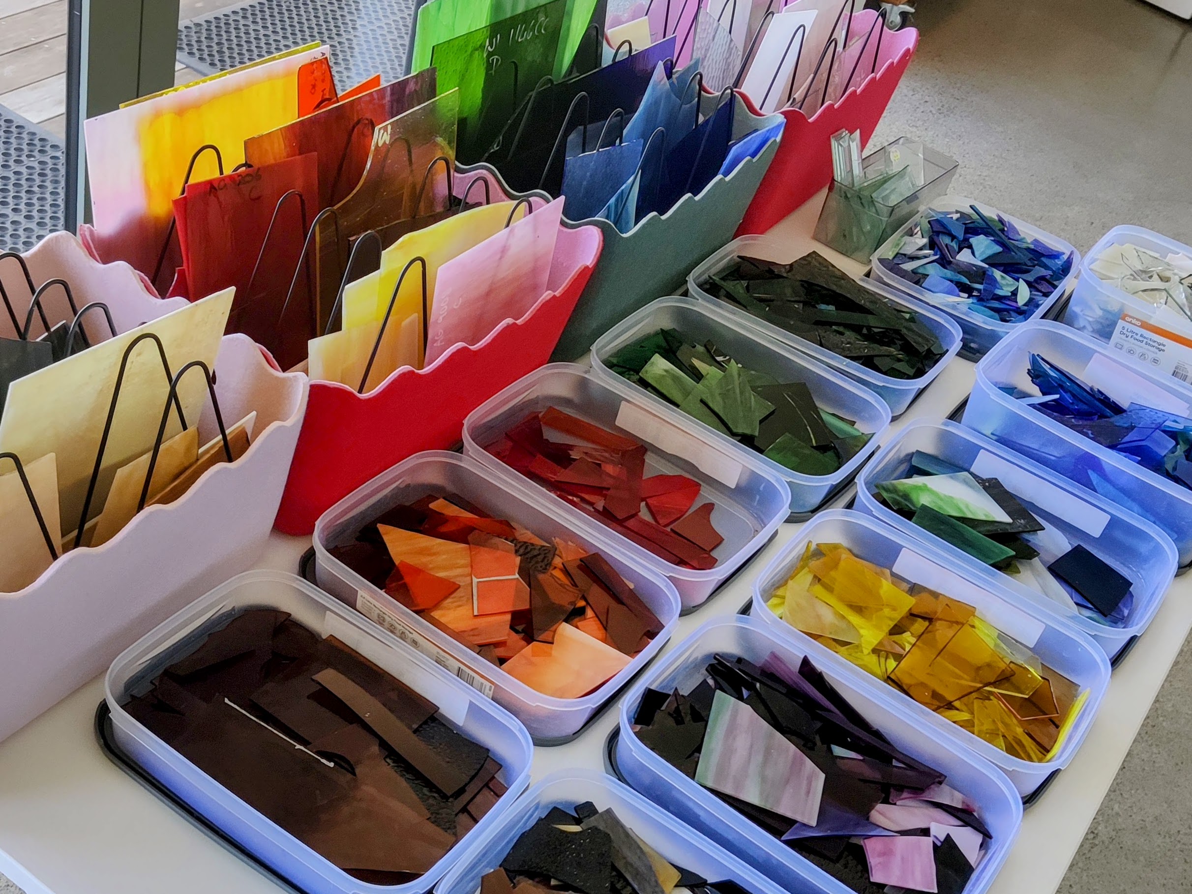 - Advanced pathway for committed makers (studio model): You’ll pay a flat rate of $75 per studio day, plus $5 for each piece of glass in your design. This pathway is available only for those who completed at least two workshops AND demonstrated established skills and safe working practice. You’re welcome to book into any workshop day, work on your own design or ongoing project and progress at your own pace. Dedicated tools and instruments will be available specifically for this group.