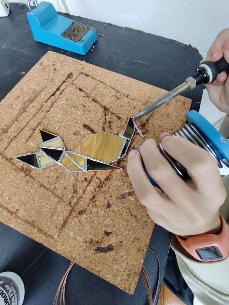 For these beginner-friendly 1-Day stained glass workshops, we will be working on a small ornament approximately 20 – 25cm in size, consisting of 10-15 pieces of glass. This ensures that everyone can complete their piece within the workshop timeframe while learning essential techniques like glass cutting, fitting the pieces, foiling, and soldering.